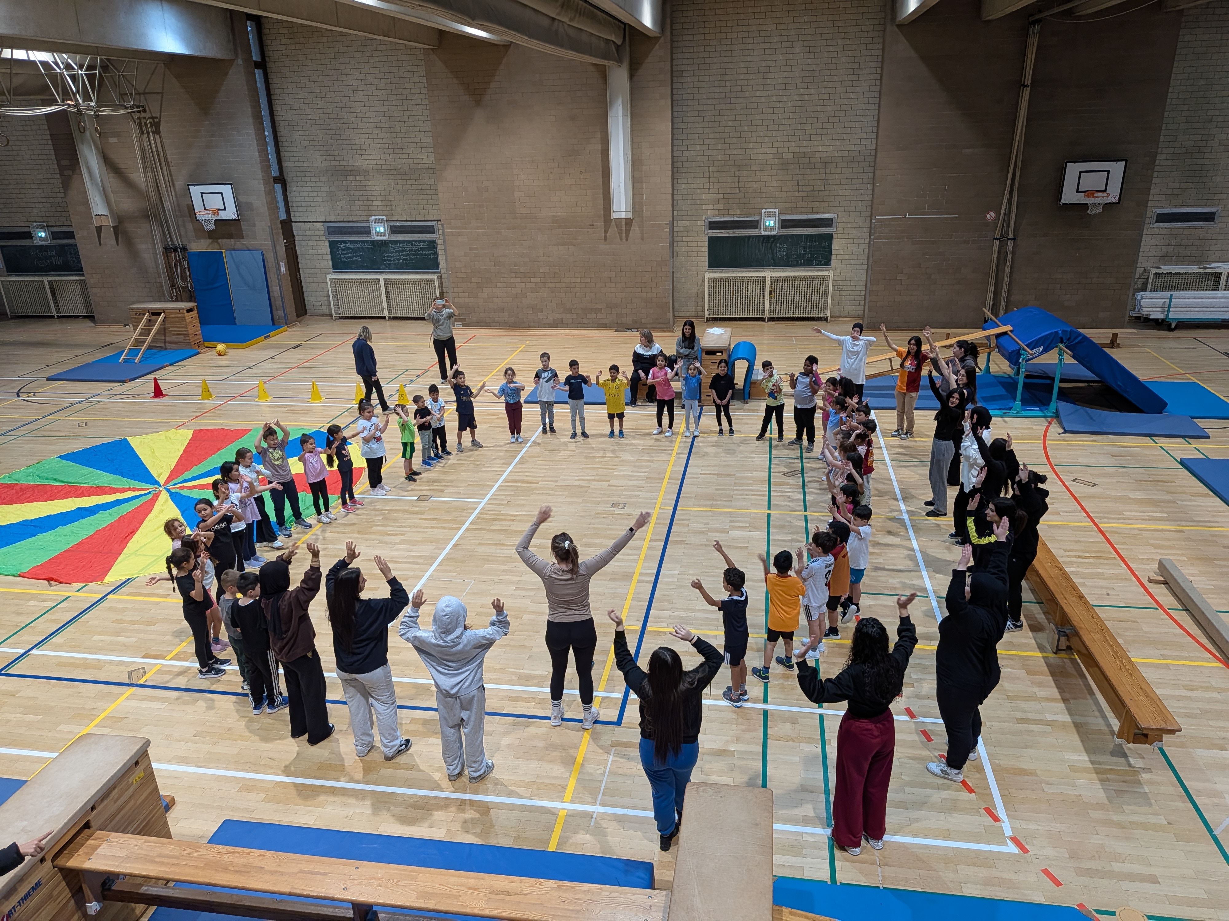 Die Kinder konnten klettern, balancieren, springen und sich auf vielfältige Weise bewegen. Dabei standen Spaß, Mut und Ausprobieren im Vordergrund. Unterstützt wurde die Veranstaltung tatkräftig von Schülerinnen der 11. Klasse, die als Helferinnen an den Stationen halfen, sicherten und die Kinder motivierten.