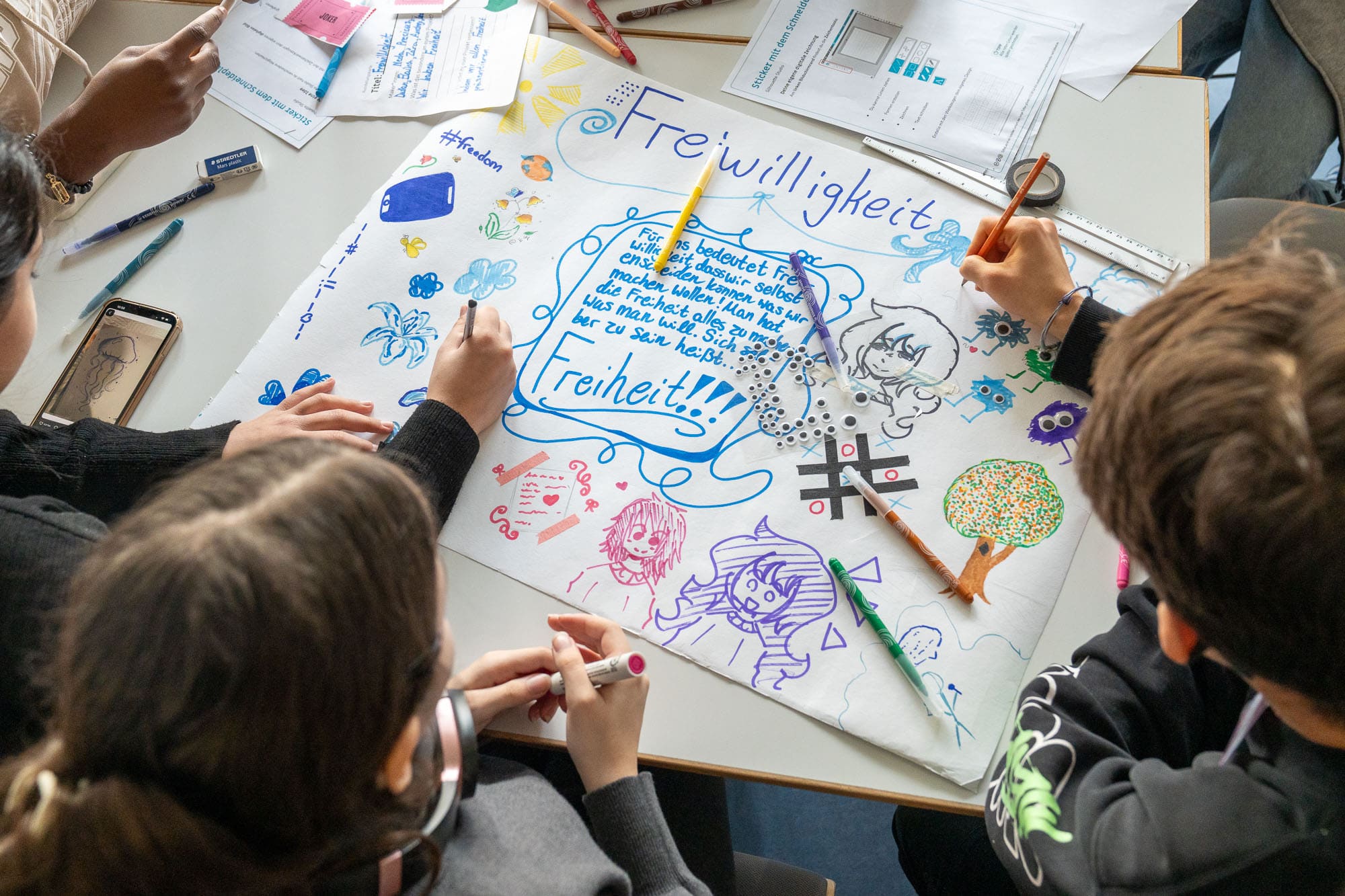 In Arbeitsgruppen setzten sich die Teilnehmenden mit Themen wie Vielfalt, Kinderrechten und Freiwilligkeit auseinander. Dabei nutzten sie vielfältige Werkzeuge: